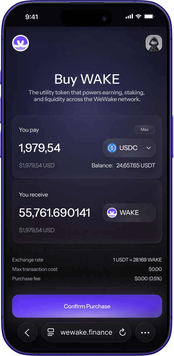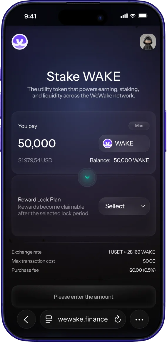 WAKE participation means acquiring or staking WAKE within defined platform mechanisms that align users with ecosystem activity. It is not a guarantee of financial outcome, but structured interaction governed by transparent rules.